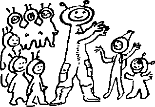 А космонавты вместо скучных отчётов записали для жителей Угрюмой планеты самые весёлые и добрые сказки, какие только вспомнили, и нарисовали к ним прекрасные рисунки. И когда они улетали, то уже все жители Угрюмой планеты читали, перечитывали, переписывали и даже сами сочиняли сказки и рассказывали их друг другу.