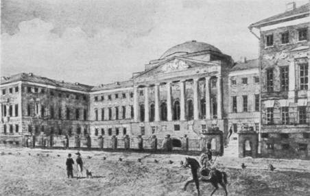 Мocковский университет, кипучую жизнь в его стенах Лермонтов хорошо запомнил, хотя пробыл там меньше двух лет. В сентябре 1830 года началась холера, и занятий не было. Они начались лишь в январе 1831 года. «Бывало, только восемь бьет часов, //По мостовой валит народ ученый», – писал Лермонтов в поэме «Сашка». Московские студенты – самая передовая часть подрастающего поколения тридцатых годов. Одновременно с Лермонтовым в Московском университете учились Герцен и Белинский.