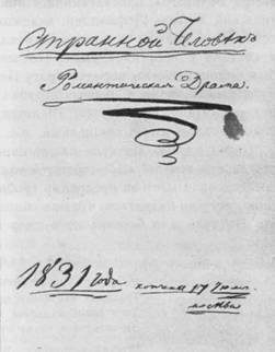 Титульный лист драмы М. Ю. Лермонтова «Странный человек».