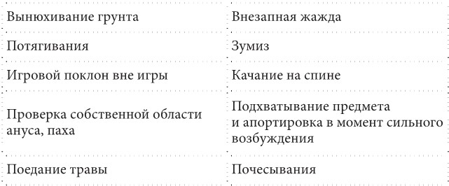Обычно смещенное поведение предшествует демонстрации сигналов нервозности или проявляется одновременно с ними.