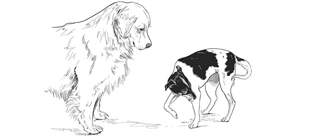 Тело. Рассматривая положение тела, важно проанализировать высоту корпуса (собака тянется вверх, чтобы казаться выше? или уменьшает свой размер, припадая к земле?) и стремление корпуса к раздражителю или от него. Чем выше старается казаться собака и чем больше она тянется в сторону раздражителя, тем выше ее уверенность в себе и готовность отстаивать свои интересы. Чем ниже хочет казаться собака и чем дальше она старается отодвинуться от раздражителя, тем меньше ее уверенность в себе.