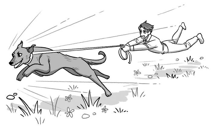 2. Выросшая собака не научена ориентироваться на скорость передвижения ее хозяина. Маленький щенок вынужден шагать своими маленькими лапками довольно быстро, чтобы не теряться позади своего хозяина. Если владелец не обучает щенка подстраиваться под скорость хозяина, растущий щенок привыкает бо́льшую часть прогулки придерживаться привычного ему со щенячьего возраста темпа. Только вот лапы-то уже выросли, и привычный темп придает такой разгон молодой собаке, что теперь уже хозяин остается далеко позади.