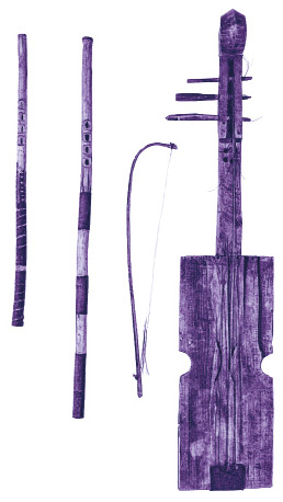Коми народные музыкальные инструменты – сигудöк и бадьпу пöляны (волосяная гармошка и ивовые дудки).