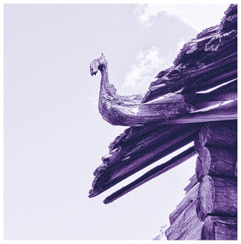 Верхняя часть дома, чердак, аналогична небу. Там хранили вещи-обереги (например, пасхальные яйца, одежду, в которой умер человек). Нередко на чердаках домов находились иконы, распятия, части иконостасов из храмов, разрушенных в советские годы. Считалось, что все эти предметы защищают постройку от стихии. В прошлом крышу венчал оберег – конек. Таким образом, верхняя часть дома устанавливала и поддерживала порядок, мир в жилище, подобно тому как Ен сверху управлял в верхнем мире и благоволил событиям на земле.