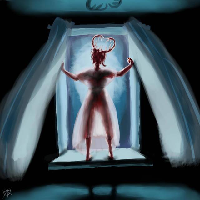 Женщина встала с узкой кровати – под ногой тихо хрупнул раздавленный лист, – прошла к открытому окну. Ночной воздух пробрался под длинную ночную рубашку, холодил кожу, от него по рогам к лицу проходил лёгкий, приятный звон. Шермида улыбнулась. Покрепче сжав в ладони каменную каплю, ступила на невысокий подоконник. До земли было далеко.