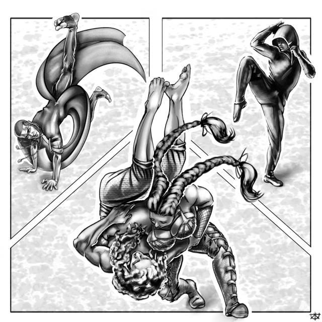В кошачьей походке Зраци не уступал Мауне. Но она с ним, казалось, играла как мама-кошка со своим неразумным отпрыском. Бэн, жадно глядящий на них, заметил, что парень не бьётся и в половину показанной ранее силы. Он делал выпад – женщина застывала, но едва их тела должны были соприкоснуться, как Мауна уклонялась, тянула Зраци на себя и наносила резкий удар. Пару раз парень чуть не упал, но, как показалось Бэну, больше намеренно, чтобы использовать тот свой приём: пинок снизу вверх. Но женщина не позволяла, держась сбоку и каждый раз оказываясь не там, куда поворачивался противник. Трибуны верещали, голоса заливали поле, упрашивали кончать котёнка скорее. Но Мауна игралась, и только финальный бой барабана был ей указ.