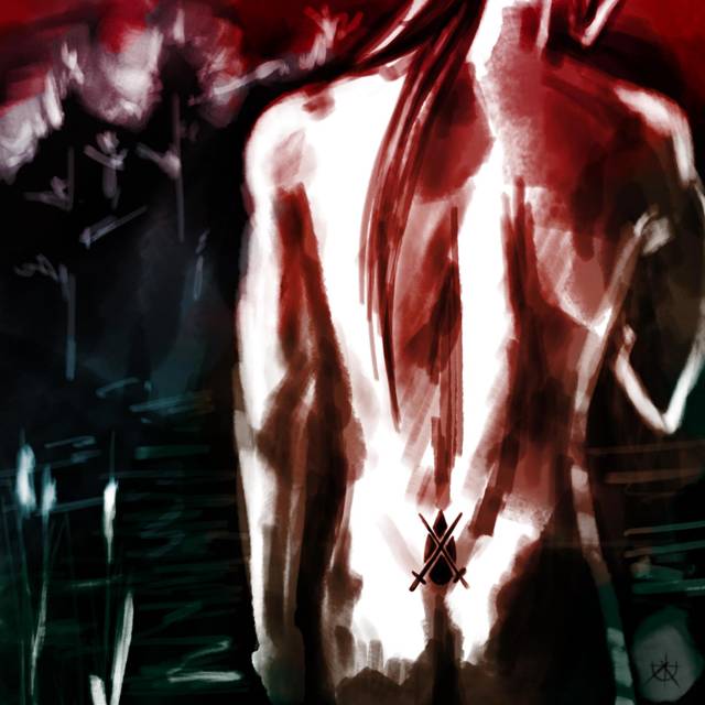 Бэн повёл следом Хойхо, и тот спокойно улёгся, разделённый навесом с Буруном. Люди же не торопились отдыхать. Провожатый вновь приложился к бутылке, предложил поесть, но спутники отказались, тогда он поглядел на воду и стащил с себя одежду и обувь. Месяц не давал много света, но и его хватило, чтобы увидеть на копчике Корвуса татуировку – капля и два скрещённых меча. Парень разделся полностью и, собрав в высокий хвост волосы над выбритыми висками, пошёл к озеру.