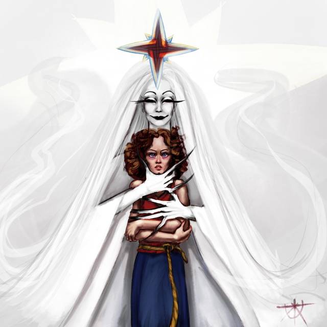 Из ниоткуда, будто сотканная из света, появилась женщина в белоснежных одеждах. Лишь плавные движения помогали различить её фигуру, да глаза, чёрные, как страх. Шлейф платья и длинные рукава уходили в даль. Тонкий палец указал на полусферы, те вспыхнули ярче. Рихард почувствовал жжение на лице, закрылся и левой рукой, но тут же опустил. Перьев, которые он на ней вырезал во время инициации, не было. Кожа оказалась ровной и гладкой с нервно бьющимися под ней каналами вен. Мальчик покрутил руку, чтоб разглядеть со всех сторон, и заметил, что женщина, всё ещё указующая на правильные формы, не отбрасывала тени в отличие от него.