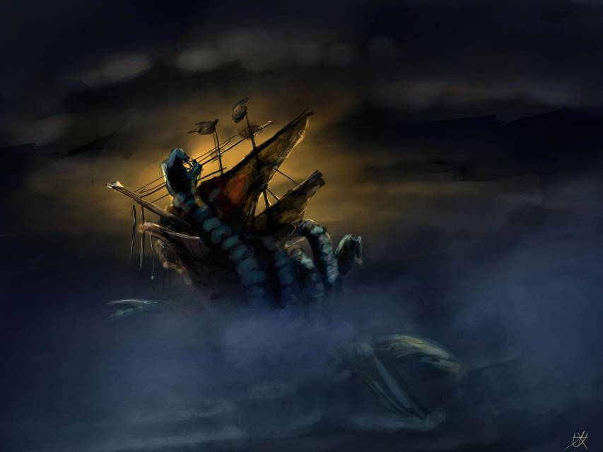На одном из редких обломков нашёл пару больших серокрылых птиц. Подлетел к ним, выудил свисток, выдул булькающий звук, хотя воды внутри не было. Птицы зашипели, перебирая лапами по доске, отодвинулись. Ещё несколько попыток – бестолку. Другие птицы, косяк жёлтоспинных рыб, тягучее нечто с дюжиной глаз на стебельках, колышущееся в отдалении – все они игнорировали его, даже пугались. «Надо поторопиться, уже что-то решить и плыть искать лекаря, иначе могу не успеть, и на моей совести будут как минимум эти двое», – понял Рихард зачерпнул воды, плеснул в лицо, сплюнул с бранью соль, отправился к лодке, которую отнесло уже далеко. Лукреция и Джази стояли над телом Паулины, накрытым тонким одеялом.