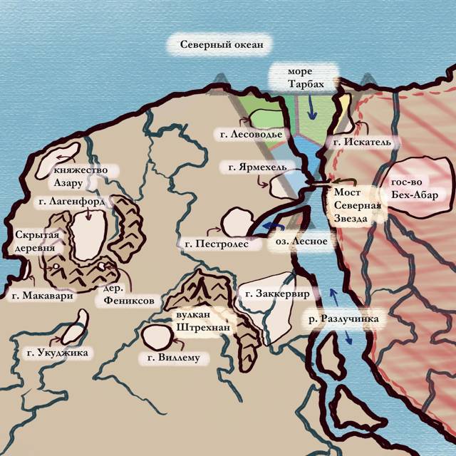 Указка спустилась от города Искатель вдоль реки до моста Северная Звезда, который кончался на другом берегу в городе-форте Ярмехеле. Стукнув по нему дважды, переместилась чуть юго-западнее по широкому тракту к городу, который стоял на берегу озера, соединённого с рекой. Город этот носил название Пестролес, славился своими гостиницами, рыбными и мясными деликатесами, меховыми изделиями, сувенирами из янтаря и агата, прочной и тонкой писчей бумагой, а ещё своим нежеланием вступать в союзы с кем-либо. Позволив рассмотреть карту и сделать выводы, мэр продолжил: