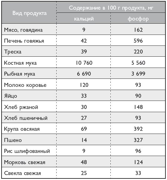 Содержание кальция и фосфора в продуктах