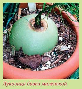Бовея маленькая (Bowiea папа). Это растение мельче бовеи вьющейся, но имеет толстую и сочную плеть.Необходимо предупредить о соблюдении осторожности при содержании бовеи – все части растения ядовиты. Они могут стать причиной раздражения влажной кожи. Раздражение остается несколько минут. Попадание больших количеств в желудок очень токсично. Симптомы: тошнота, понос, боль в животе, замедленный пульс. Не следует позволять домашним животным жевать побеги бовеи. А в целом же эти растения заслуживают большего внимания – как довольно неприхотливые и интересные.