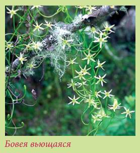Появляющийся ранней весной сильноразветвленный цветонос в отсутствие листьев берет на себя роль фотосинтезирующего органа. Он относительно тонок (до 5 мм в диаметре), слегка уплощен и может достигать длины до трех метров. Если учесть большое количество веточек второго и далее порядка, суммарная площадь поверхности этой «кудрявой» плети представляется значительной.