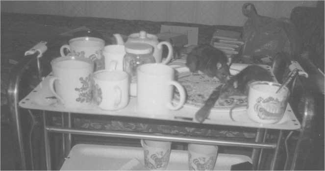 Когда шанинская Школа автостопа стала собираться у меня, регулярно по субботам, крысы помогали мне убирать со стола. После чаепития оставалось множество объедков. Я заранее крыс не кормила, а после тусовки выпускала их сначала на кровать – собрать крошки из постели, а потом на стол. И чистота, и на корме экономия. А брезгливые ханжи пусть воротят нос. Крысы чистоплотнее очень многих людей, не будем указывать пальцем.