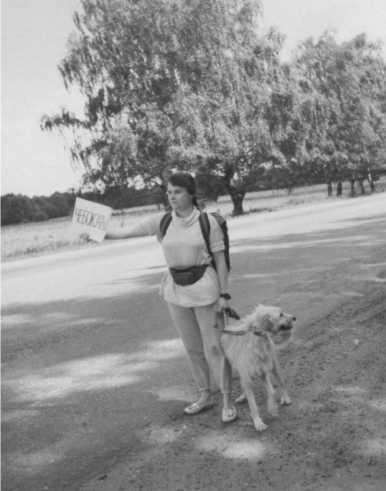 Дело было в июле: тепло и день длинный. Я оделась во всё жёлтое (из секонд-хэнда), и пёс у меня рыжий. Вышла в ночь, чтобы поскорее от Москвы отъехать. Перед выездом я не кормила Хитчера и не собиралась кормить в дороге – а то вдруг его укачает.