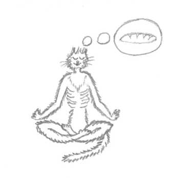 Он оказался длинным и чрезвычайно тощим, как и подобает йогу. И ходил на задних лапах. Правда, не всегда. А питался хлебом! Девушка, которая его принесла, выдала нам туалетную кювету с клочком газеты, миску для еды… и белую горбушку. Положила в миску – и кот половину отъел.