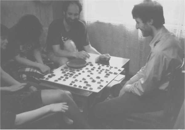 Мы с Филом пили чай, а Лига перезванивалась и восхищалась нашим подвигом. Надо вербовать! На следующий день мы были приглашены к президенту Ворову на чай и игру в танки. Это любимая настольная игра Ворова. Он фанат танков – ну, всякие же увлечения бывают. В доме у него множество литературы по танкам. А игра представляет собой гибрид «Морского боя» с шашками. Играют обычно двое на двое. На клетчатом игровом поле расставляют модели танков, сделанные из ластиков. Игроки бросают кости на число ходов и число выстрелов. Разные танки имеют разное вооружение и разную степень защиты-брони, соответственно атакованный танк может быть «ранен» и «убит». В исторической встрече принимали участие: хозяин, мы с Филом, Мышь с Медведем и ведомая Ворова на последних гонках Лена «Варшава» из Новочебоксарска.