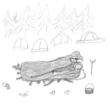 Но тут Тим применил свои знания выживальщика. Будить мы никого не стали. Раздули угли затухшего недавно костра и попили горячего чаю, а потом Тим раскидал угли с горячей земли – костёр горел долго, настелил лапника – благо, елей росло много, на него положил пенку, и мы вдвоём забрались в спальник, застегнув его до пояса. И не то что не замёрзли – было даже жарко.