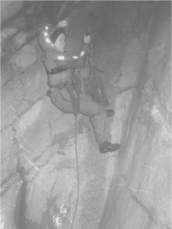 Этот комбез можно увидеть на многих моих фотках. Беречь сию форменную одежду я не считала нужным и первым делом применила её в поездке на Кавказ, где тут же обработала пещерной грязью. Светоотражающие полосы в лучах фонарей выделяли меня среди прочих спелеологов. Три месяца спустя я снова прокатилась в нём по трассе и полезла в пещеры, на этот раз крымские. Отстирала в коровьем ручье, высушила на костре, проехалась с запахом дымка до Кавказа и там достирала путём сплава по горной реке. Вместо спасжилета я засунула под комбез пять пластиковых бутылок, было почти удобно.