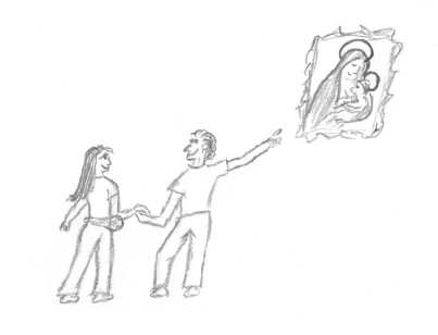 Мужик изображает на лице крайнюю степень уважения, тыкает пальцем в изображение Мадонны на стене, потом в меня: