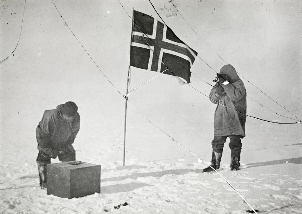 Прошло не меньше получаса прежде, чем еще недавно суровые первооткрыватели успокоились, перестали озираться по сторонам и сопровождать каждую фразу смехом и снова настроились на серьезный лад. Первым делом решено было установить на полюсе норвежский флаг. Он лежал в санях Хансена, заранее подготовленный к этому важному событию – его надо было только развернуть и вкопать в снег. Хансен поднял флаг, протягивая его Амундсену, но руководитель экспедиции торопливо замотал головой:
