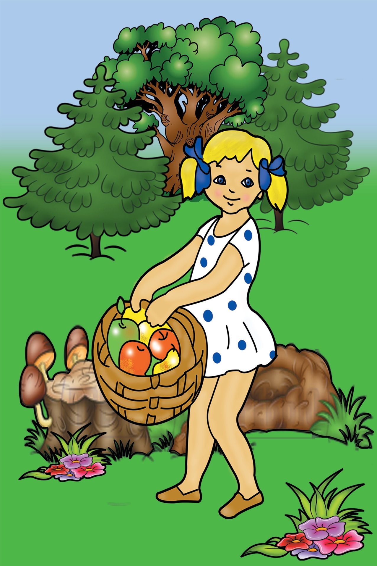 Вскоре дождик кончился. Вновь светило солнышко, в небе сверкала разноцветная радуга, а над поляной порхали бабочки и басовито гудели жуки.