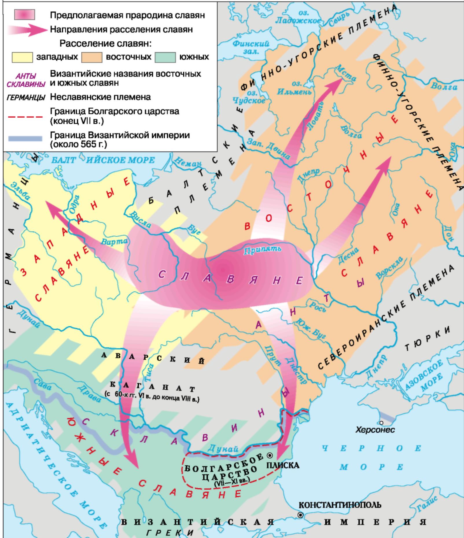 6. По карте на с. 8 проследите направления расселения славян с их предполагаемой прародины.