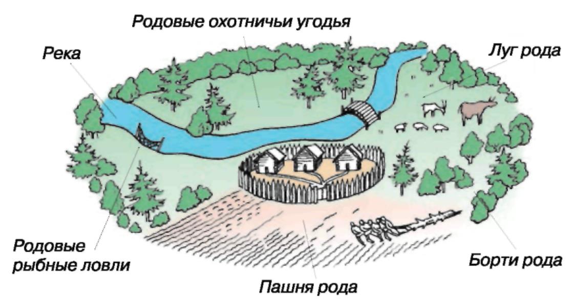 В VII – IX вв. родовая община у восточных славян начала вытесняться соседской (территориальной), члены которой уже являлись просто соседями. Родовое поле разделили на участки и раздали их малым семьям (отец, мать, дети, иногда внуки). Водопоями, покосами, лесом общинники пользовались сообща.