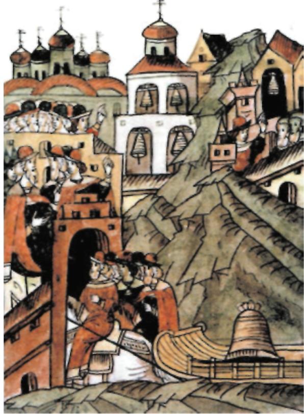 Вывоз новгородского вечевого колокола в Москву. Летописная миниатюра