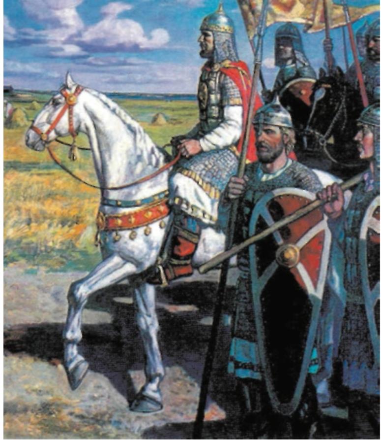 Князь с дружиной выступает в поход против половцев. Художник А. Майборода