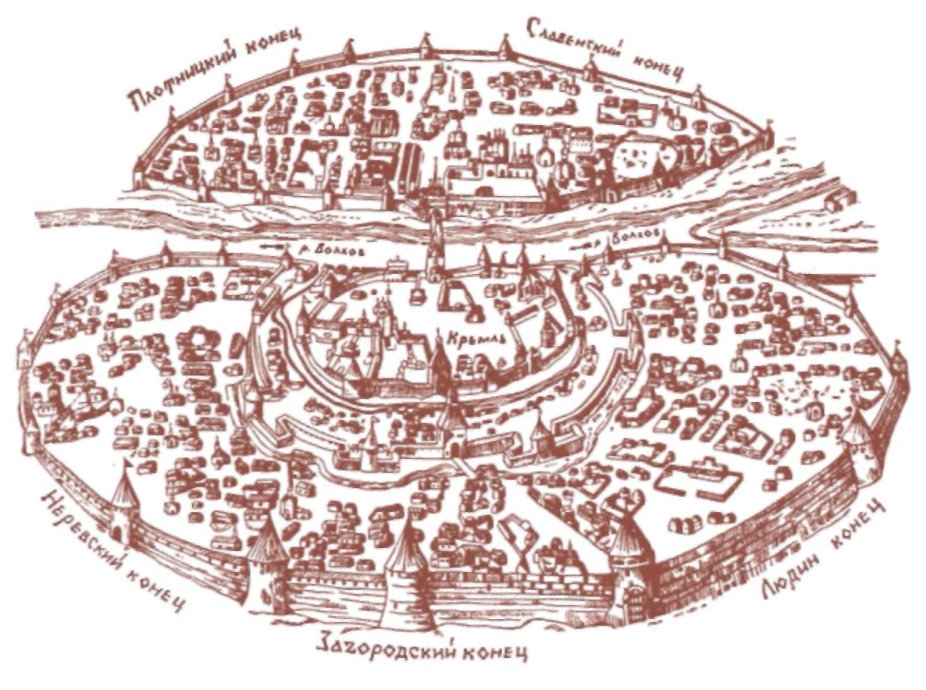 План Новгорода. С иконы XVII в.