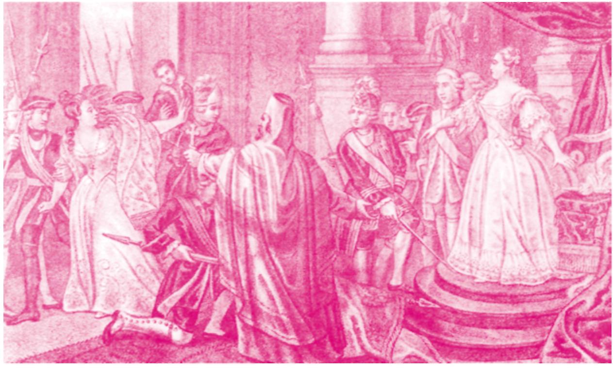 Анна Иоанновна была дочерью царя Ивана V, брата Петра I. В свое время Петр выдал племянницу замуж за герцога Курляндского, но, не доехав до курляндской столицы Ми-тавы, Анна овдовела. Ее 18-летний супруг умер, не вынеся питейных «увеселений», устроенных Петром I на его свадьбе. Потом Анна бедствовала в Митаве. Правили за нее гордые курляндские дворяне, но Госсии выгодно было держать Анну в Митаве, чтобы через нее влиять на курляндские дела.