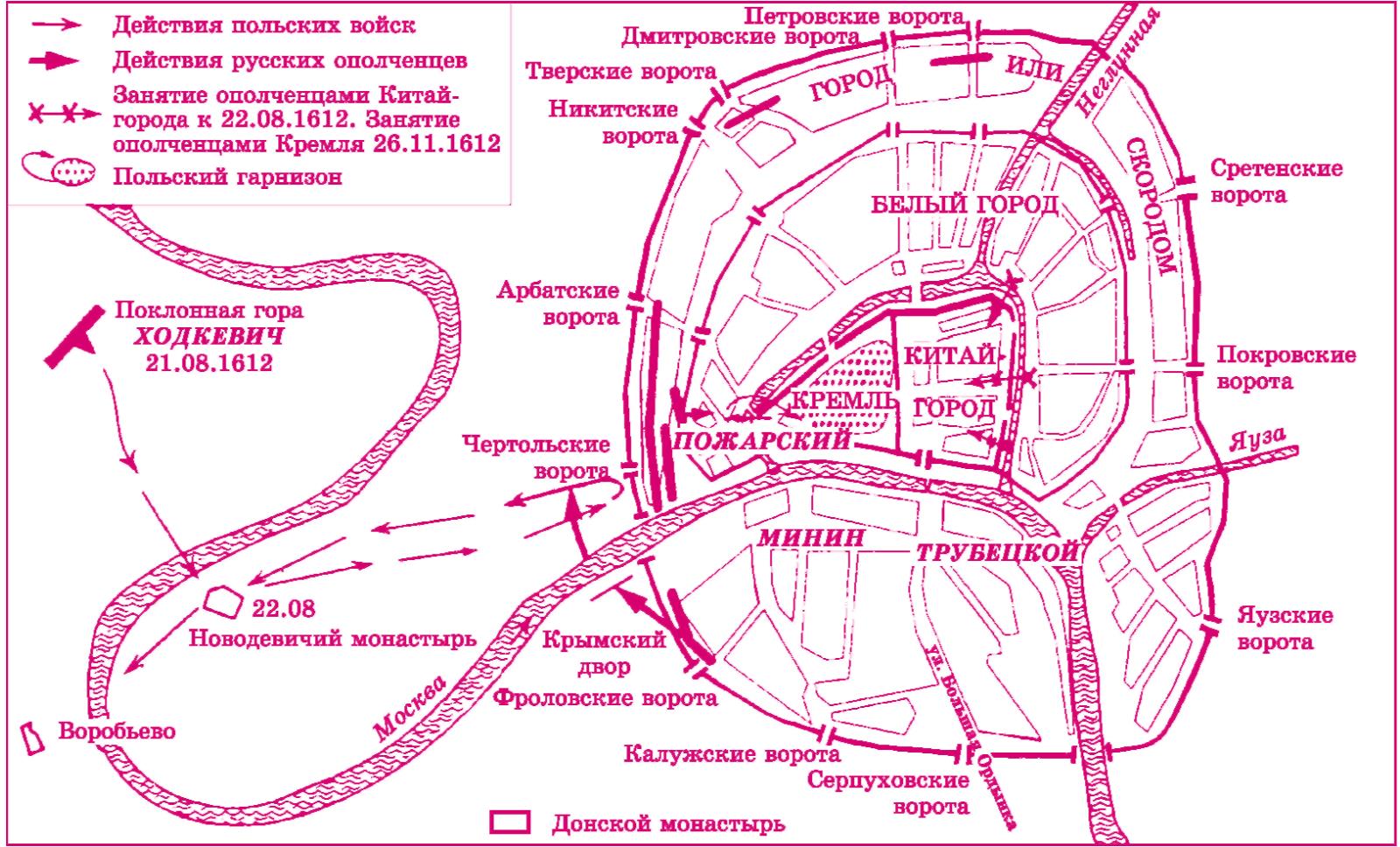 23 августа 1612 г. поляки попытались прорваться в Кремль со стороны Замоскворечья. Но Пожарский разгадал их маневр и отправил на правый берег Москвы-реки часть ополченцев. Противник был остановлен.