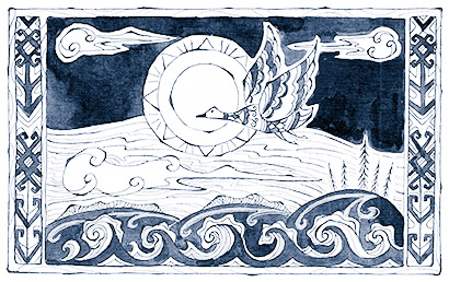 Марийцы, как и многие другие народы, особо почитали водоплавающих птиц. Связано это с тем, что водоплавающая птица одинаково свободно чувствует себя во всех трех мирах – верхнем, среднем и нижнем. Она летает по небу, живет на земле, плавает по воде (а водоемы, как помнит читатель, считались проходами в нижний мир), то есть она посредница между всеми ярусами Вселенной.