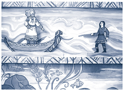 [Закрыть] и сказал: «Если дашь мне десять пудов муки, научу тебя, как можно удлинить день». Купец согласился. Лопшо Педунь велел ему с утра пораньше одеться потеплее – надеть зимний тулуп, валенки, меховую шапку, взять вилы, залезть на высокую березу и подпирать вилами солнце, чтобы не могло оно опуститься к горизонту.Сделал купец все, как велел Лопшо Педунь. Утром задал батракам работу на целый день и полез на березу. Сидит, подпирает вилами солнце. Не прошло и часа, взопрел он в зимней одежде, затекли у него руки, и стало ему казаться, что сидит он так уже очень давно. К полудню силы купца совсем иссякли. Кое-как слез он с березы и закричал работникам: «Кончай работу! Уже вечер!» Те удивились, но возражать не стали и пошли отдыхать. Не хотелось купцу отдавать Лопшо Педуню десять пудов муки, но пришлось. Ведь день-то для него и правда оказался длиннее, чем обычно.