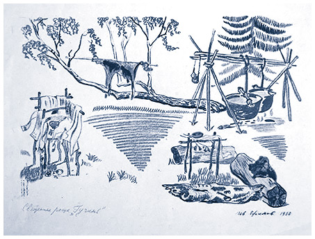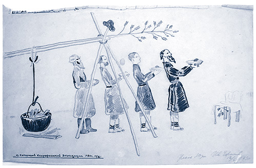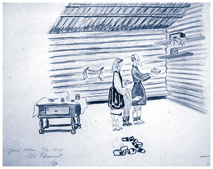 Ефимов И. С. Рисунок «Моление в семейной куале», 1930 г.