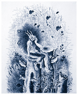 Гарипов М. Г. Офорт «Вукузё» (Хозяин воды). Иллюстрация к сказке, 1985 г.
