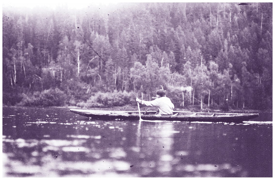 Передвижение при помощи коротких шестов на речной лодке-долбленке. Орочи. 1927 г. МАЭ И 1781-54/1.