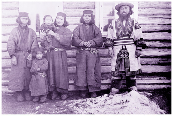 Фото Б. О. Пилсудского. Портрет семьи с сестрами. Айны. Сахалинская область. Не позднее 1909 г. МАЭ 1472-36.