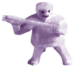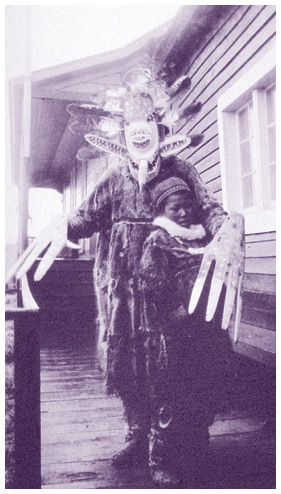 У азиатских эскимосов особенно ярким был осенний «китовый праздник», включавший в себя такой колоритный эпизод: из дерева изготавливали фигурку кита длиной около сорока сантиметров и подвешивали ее под потолком в самом просторном жилище селения. От нее к стенам протягивали четыре ремня, на которых при помощи скользящих петель крепили маленькие деревянные байдары с фигурками охотников. Шаман тянул лодки за привязанные к ним веревки – и те скользили, имитируя охоту. Женщины при этом пели ритуальные песни или били в бубны. Этот обряд должен был обеспечить охотничью удачу на следующий год. Для большего правдоподобия деревянный кит «пускал фонтан». Один из этнографов описал, как это делалось: «Полая внутри фигурка кита через отверстие в нижней ее части предварительно заполнялась порошком толченого белого камня. В это отверстие вставляли конец тонкой кишки лахтака. Кто-нибудь из присутствующих брал в рот другой конец кишки и дул в него. Под действием воздуха порошок вылетал из кита через второе отверстие, проделанное в голове фигурки».