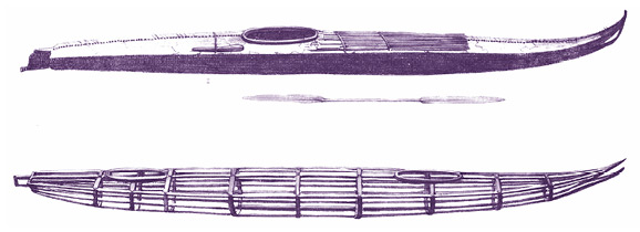 Сшили они из рыбьей шкуры байдару, из рыбьих ребер сделали шпангоуты, из самой большой кости, которую называют «куллах», – планку для мачты, из хвостовых костей – руль. Взял юноша отцовское копье, спустил байдару на воду и поплыл морского зверя добывать. Прошло три дня и три ночи, а ему не встретилось ни одного тюленя или хотя бы нерпы. Стал он просить: «Байдара моя, атхилях, помоги!» И тут же куллах зашевелился, развернул мачту с парусом по ветру – и байдара понеслась быстрее птицы. Вскоре увидел юноша целую стаю китов. Привязал он отцовское копье на длинную веревку, метнул и убил самого крупного кита, притащил его на веревке в селение. Обрадовались люди. Кит большой, его мяса надолго всем хватит39.