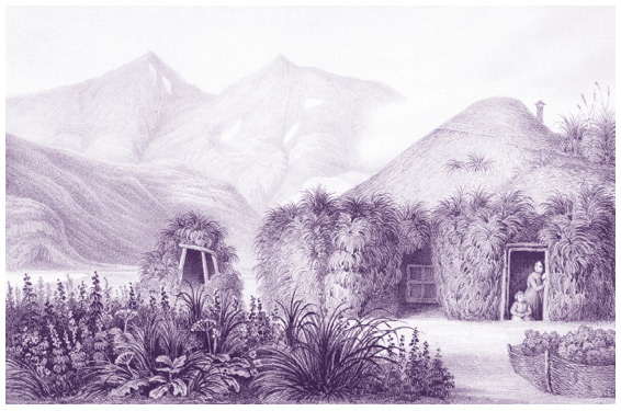 Ф. Х. Киттлиц. Жилище в Уналашке. 1826 г.