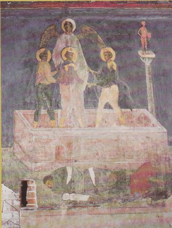 Три отрока в пещи огненной. Роспись жертвенника. Конец XV – начало XVI в. Деталь