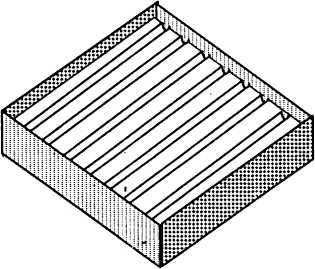 Мелкие семена и семена среднего размера высевают рядками. Для разметки рядков пользуются отрезком полудюймовой (толщиной 12,5 мм) доски длиной 40 см или отрезком полудюймовой пластиковой трубы такой же длины. Надавливая ребром доски или трубкой на поверхность грунта, делают 7 или 8 бороздок (рис.3.20). Расстояние между крайней бороздой и стенкой ящика – 1,5-2 см, каждая бороздка вместе со следующим за ней промежутком занимают 5-6 см.