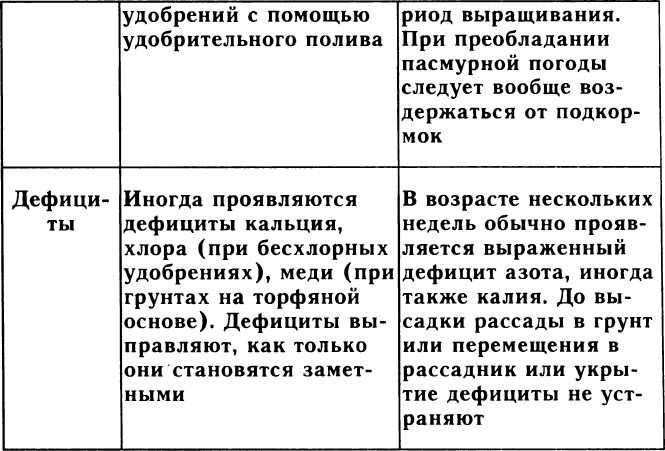 Если же свет не обеспечен, внимание направляется не на создание условий для фотосинтеза и роста (что одно и то же), а на выживание рассады. Усилия затрачиваются на то, чтобы при коротком световом дне, в бессолнечные дни или недели любыми средствами удержать растения от вытягивания, ослабления и полегания. Требуется законсервировать растения на то время, когда условия не позволяют им расти. Консервация рассады достигается предельно низким уровнем обеспечения влагой и низким уровнем минерального питания.