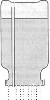 Лейку можно сделать также из любой пластиковой емкости с навинчивающейся крышкой, например, флакона из–под шампуня. Чем шире крышка, чем объёмнее флакон, тем лучше. Тонкие отверстия выжигают или прокалывают в пробке. В пробке же закрепляют трубочку, которая должна доходить до дна (рис.7.1). Ток жидкости регулируют надавливанием на стенки. Недостатки лейки – малый охват площади и длительность заполнения.