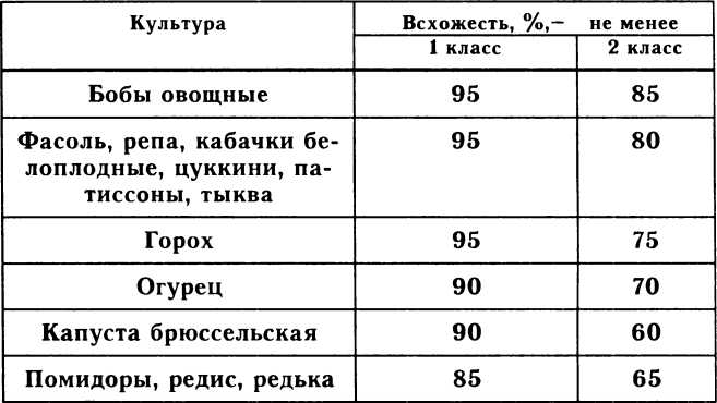 Таблица 6 Посевные качества семян овощных культур