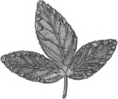 Рис. 2.6. Когда воздух насыщен водяными парами, влага, поднимающаяся по растению, остается на листьях в виде капель