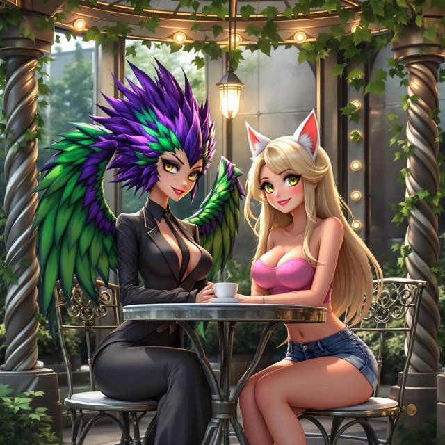 Кошкодевочка тут же вскочила, её хвост вопросительно изогнулся.
