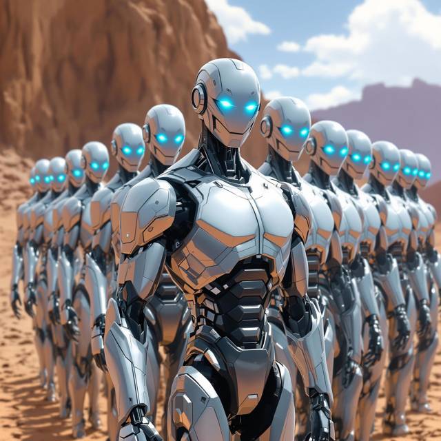 Строй роботов тянулся и тянулся. Их было не три и не пять. Их была целая рота. Ну, может поменьше. Но несколько десятков точно.